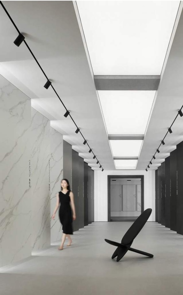通過解構(gòu)主義的設(shè)計(jì)風(fēng)格,流線性的空間布局,動(dòng)感的陳列與展示,以及當(dāng)代年輕人喜歡的風(fēng)格色彩與光影搭配,成功吸引了更多意向群體來到無上巖板總部展廳打卡體驗(yàn)。