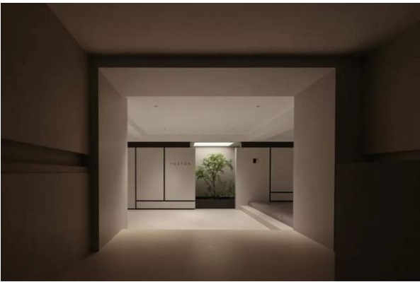 通道入口通過樸實(shí)無華的物理形態(tài)創(chuàng)造出安靜的氛圍,營(yíng)造出未來感的寧?kù)o,融合了技術(shù)空間和建筑手法,植物造景三面通透。