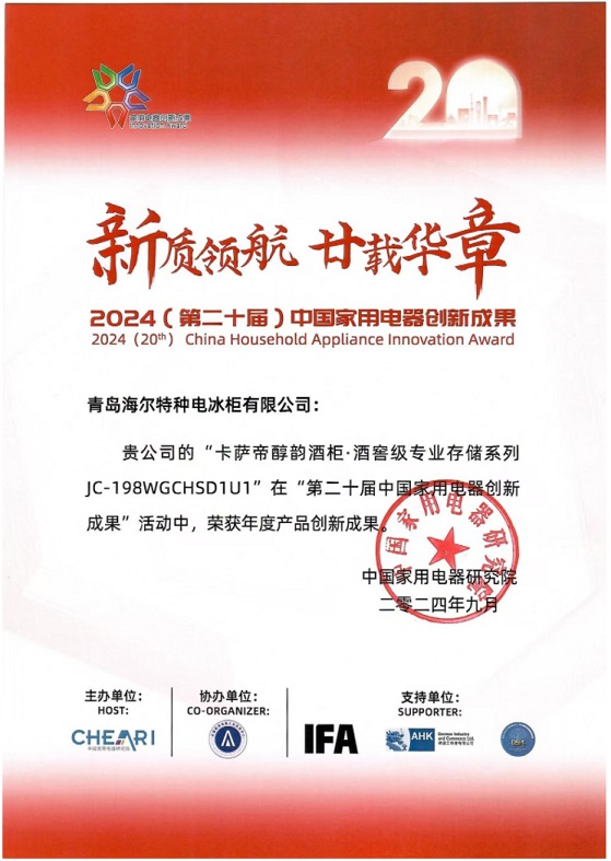 當(dāng)?shù)貢r間9月6日,“新質(zhì)領(lǐng)航 廿載華章”2024(第二十屆)中國家用電器創(chuàng)新成果發(fā)布盛典在IFA2024現(xiàn)場舉行。經(jīng)過嚴(yán)格評選,卡薩帝醇韻酒柜·酒窖級專業(yè)存儲系列憑借在恒溫恒濕和聲學(xué)降噪等領(lǐng)域的科技創(chuàng)新,獲評“年度產(chǎn)品創(chuàng)新成果”。這也意味著,卡薩帝酒柜不僅能帶來專業(yè)的酒窖級存儲體驗,更能為用戶營造出寧謐、舒適的生活空間,也為行業(yè)發(fā)展指明了新的路徑。