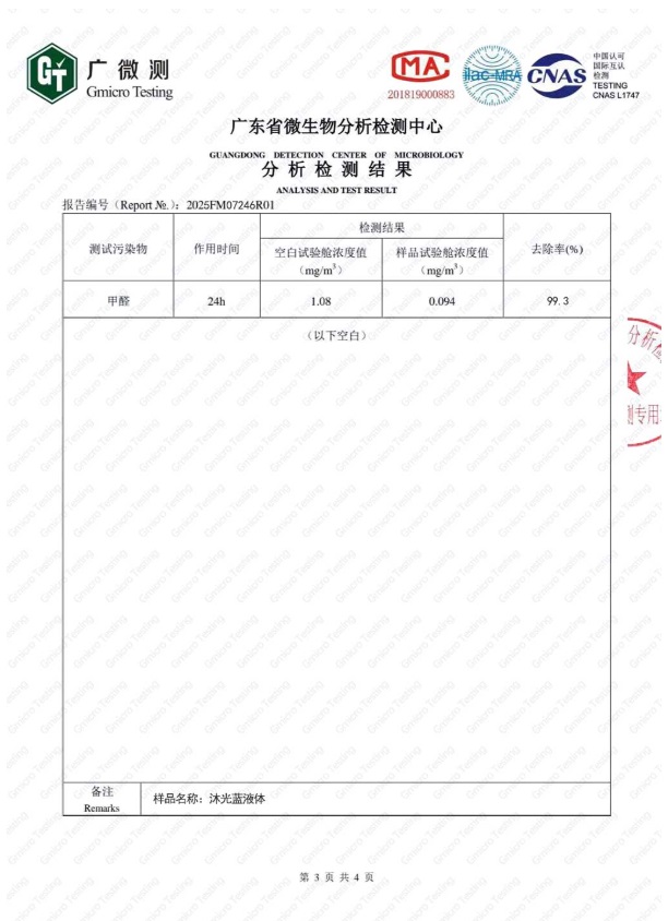 以上是沐光藍的甲醛去除率CMA檢測報告