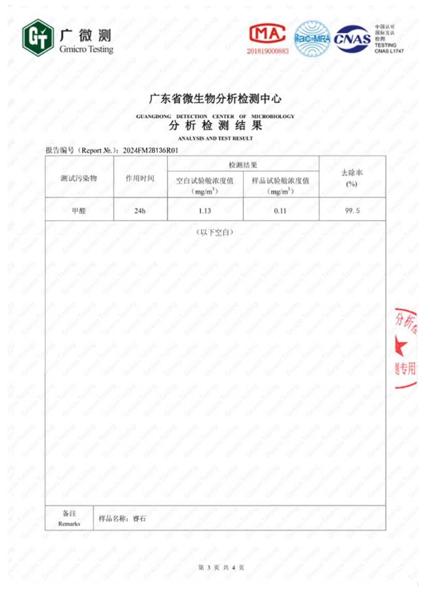以上是睿石的甲醛去除率CMA檢測報告