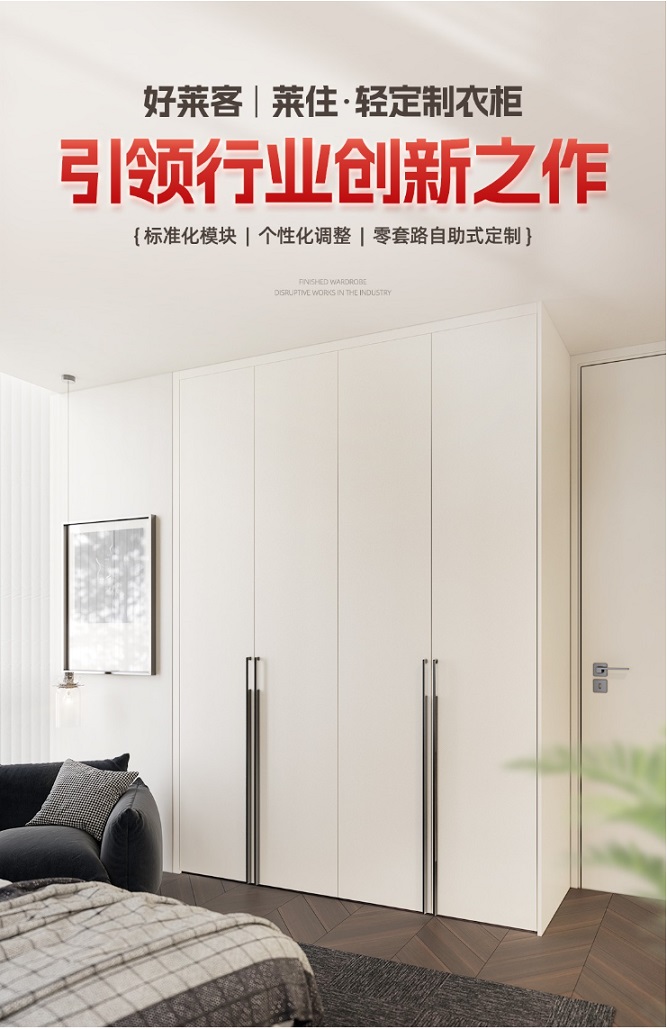 好萊客·萊住輕定制衣柜支持內(nèi)部組件自由搭配,兼容多種收納需求,搭配收邊條實現(xiàn)嚴絲合縫,真正實現(xiàn)“零容錯自助式定制”。