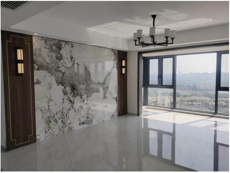 “墻面部分采用了巖板,觸摸后能感受到質(zhì)地的硬朗”,一名巡檢專家說。該工地臥室的墻面采用了藝術(shù)涂料,光澤度、美觀度都處于較高水平,廚房墻磚窗口排版取消7字拐,分中排版口內(nèi)外瓷磚美觀銜接自然。