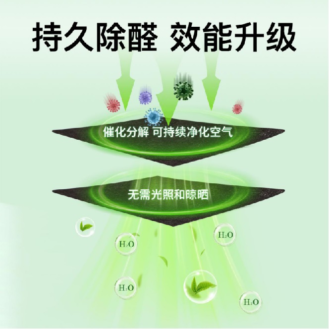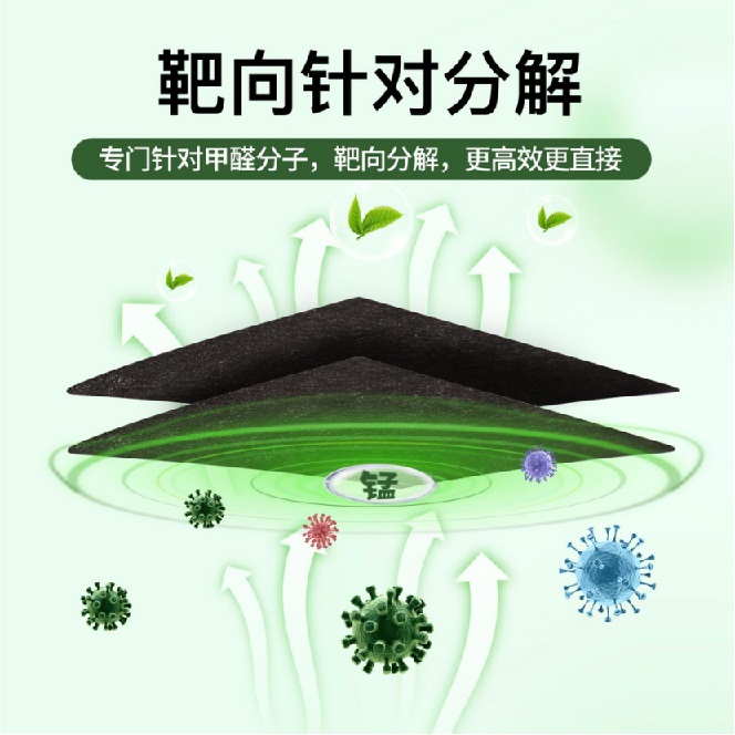 技術(shù)優(yōu)勢:無需光照、作用持久、避免二次釋放(與傳統(tǒng)活性炭吸附有本質(zhì)區(qū)別)這項技術(shù)的突破性并非單一要素的結(jié)果,而是多個創(chuàng)新點共同作用的產(chǎn)物。“分解”而非“吸附”:這與普通活性炭只能物理“吸附”甲醛有本質(zhì)區(qū)別。活性炭吸附容量有限,一旦飽和或環(huán)境溫度升高,已吸附的甲醛又會重新釋放出來,造成二次污染。而活性錳技術(shù)通過催化作用,從分子結(jié)構(gòu)上破壞了甲醛,將其轉(zhuǎn)化為無害的二氧化碳和水,這個過程是不可逆的,從而根除了二次污染的隱患。