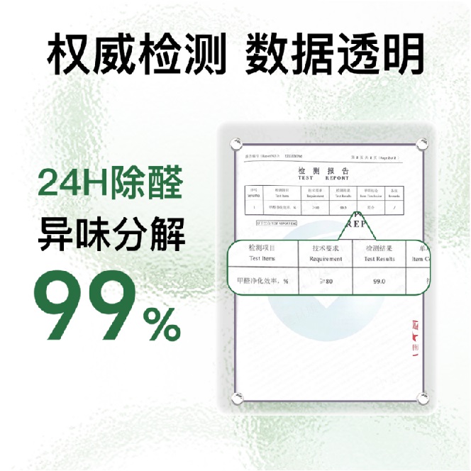 這款產品能夠 24 小時深度除甲醛,無需光照,可以深入滲透板材內部,瓦解甲醛將其轉化成 H20 和 CO2。并且不含氧化劑酒精和香精,環保無毒。因其高效安全的特性,被很多裝修完的私人家裝,醫院,幼兒園,高級會所等高要求場所廣泛應用于裝修后甲醛的治理。