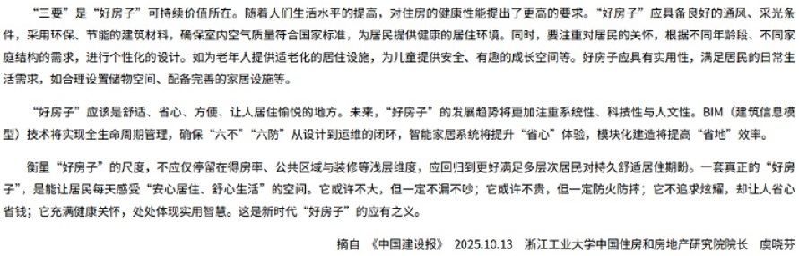 住建部部長倪虹以“6633”標準系統闡釋了“好房子”應具備的基本特質