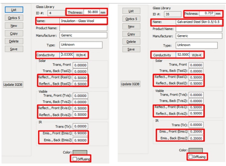 在某些情況下,當在WINDOW中創建保溫材料和/或金屬板時,它們相對的表面可能有不同的發射率,對于這種情況,請參見步驟7。