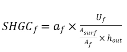 9. 當所有截面的建模都完成后,將從THERM獲得的Uframe和Uedge結果,連同從WINDOW獲得的Ucog結果,一起輸入用于計算整體產品U值的面積加權電子表格中。對于整體產品的SHGC,需要計算各個構件的SHGC值及其面積,包括框架的SHGCf和層間板系統的SHGCc。邊部和COG的值都按8.22.1章節的步驟2C進行計算(從WINDOW中獲得)。框架的SHGCf,應當按照如下公式計算: