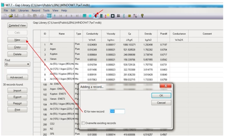 1. 點擊Gap Library(空腔氣體庫),創建一個新的空腔編號。