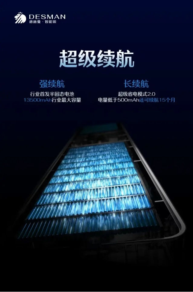 同時,德施曼首發超級省電2.0技術,當電池電量低于500mAh時自動進入超級省電模式,續航時長超15個月,有效解決旅行、出差、閑置等場景下的續航焦慮。