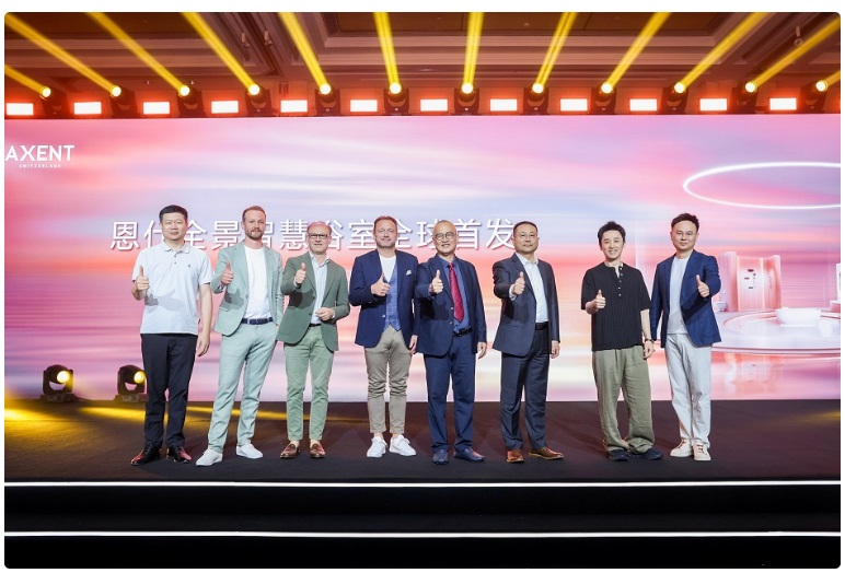 2025年5月28日,第29屆中國國際廚房衛浴設施展覽會期間,高端智慧衛浴品牌AXENT恩仕于上海浦東嘉里大酒店舉辦全景智慧浴室發布會暨品牌晚宴。恩仕集團董事長李飛宇,恩仕品牌聯合創始人Daniel Grob,恩仕集團副總裁方奕敏,恩仕首席設計官Arthur Eisenkrein,及MATTEO THUN & ANTONIO RODRIGUEZ DESIGN 事務所聯合創始人Antonio Rodriguez等業界領袖,與眾多行業伙伴、媒體嘉賓齊聚一堂,一同見證這一重要意義時刻。