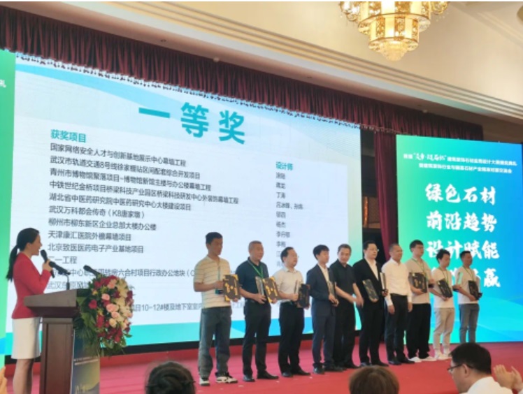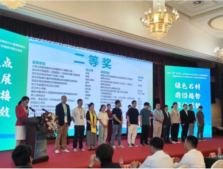 中城聯建實業(湖北)有限公司總工程師楊杰代表獲獎設計師發表獲獎感言:在建筑裝飾領域,石材的應用至關重要。隨縣,作為石材資源的寶庫,其豐富的石材品種、優質的石材品質為設計師提供了無限的靈感。