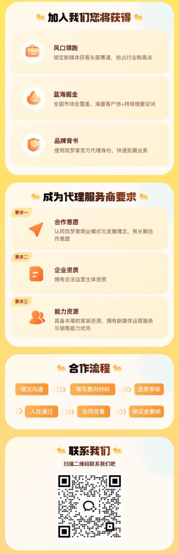 快手筑夢家表示,希望與全國范圍內(nèi)有能力、有商機、有需求的家裝伙伴達成合作,與快手筑夢家一起共創(chuàng)共贏。