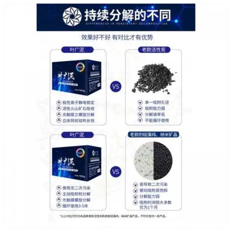 葉廣泥和活性炭不一樣,活性炭只能吸附,用一段時間以后吸附會飽和,葉廣泥不僅僅是吸附,是吸附后可以分解有害物質(zhì),不會再釋放,不需要暴曬,可以持久分解,使用3年。