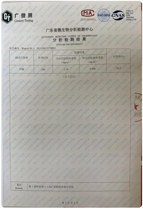 光催化效率:葉廣泥中的光催化劑,采用優(yōu)質(zhì)選材,不需要紫外線或者強(qiáng)光激活,就可以直接發(fā)揮作用,吸附后有效分解。室內(nèi)環(huán)境完全滿足分解條件,實際催化分解效果高達(dá)96%甲醛去除率,98%甲苯去除率,非常優(yōu)秀!
