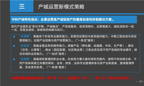 由此可以打造兩百畝到五百畝的一個企業(yè)級科技園。這就是我們中科產(chǎn)城當(dāng)前最為典型的一種園區(qū)開發(fā)運(yùn)營模式,先找產(chǎn)業(yè)IP,再進(jìn)行的企業(yè)及園區(qū)的全周期運(yùn)營服務(wù)。