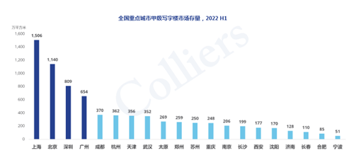 具體到北京來看,今年第一季度北京新增供應量6萬5平方米,二季度則沒有新增供應。需求端第一季度是4萬6平方米,二季度的數據則是負值,為-83000平方米,主要是北京因為疫情封控了一個月左右。疫情對整個行業的影響是比較大的,但是需要注意的是,一些品質高的樓宇受到的影響相對會小一些,包括租金和空置率,這主要在于租戶的穩定性。
